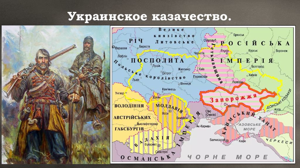 Часть украинского городового казачества находились на польской военной службе, получая королевское жалование. Таких казаков называли реестровыми – так как входили в польский казачий реестр (список). Недовольные польским господство казаки бежали в Запорожскую сечь – вольное казацкое поселение ниже днепровских порогов. Украинские казаки и крестьяне неоднократно восставали против власти католиков. Таких повстанцев называли гайдамаками. Все такие восстания были жестоко подавлены.