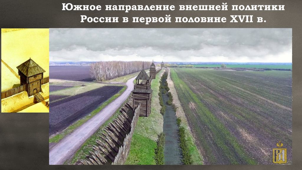 Южное направление внешней политики России в первой половине ХVII в. В период правления Михаила Алексеевича особое внимание было уделено укреплению обороны южной границы от нападений крымских татар. В 1635 - 1636 гг. приступили к возведению оборонительных линий (засечных черт) и городов на южных границах.