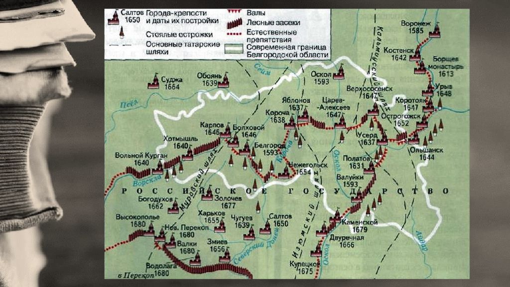 1635 – 1638 - реконструирована Тульская засечная черта, 1635 – 1653 – построена Белгородская черта, 1650-е – построена Тамбовская черта, 1679 – 1681 гг. – построена Изюмская черта.