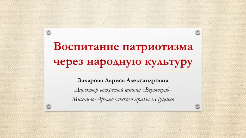 Первый слайд презентации: Воспитание патриотизма через народную культуру