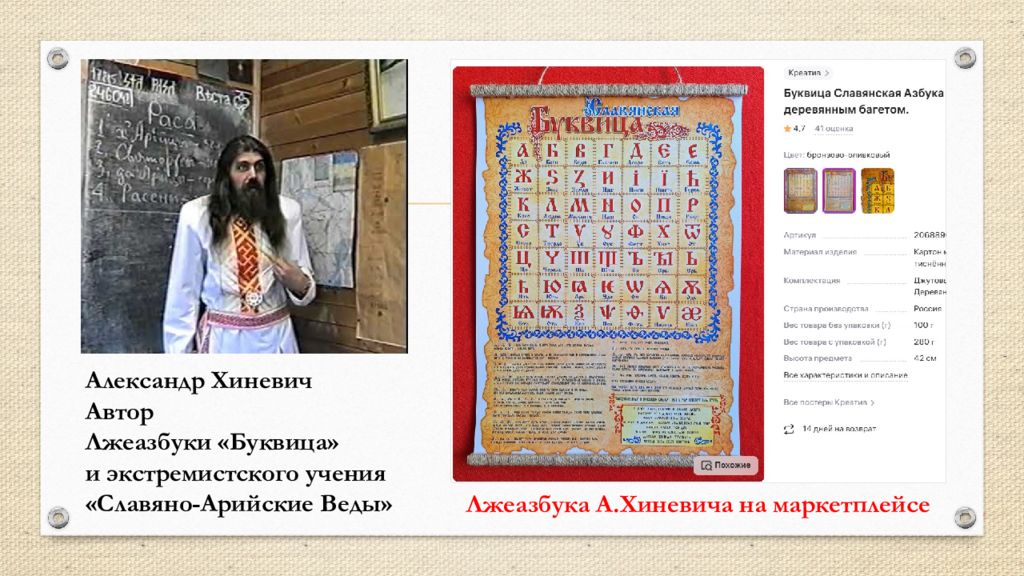 Александр Хиневич Автор Лжеазбуки «Буквица» и экстремистского учения «Славяно-Арийские Веды» Лжеазбука А.Хиневича на маркетплейсе