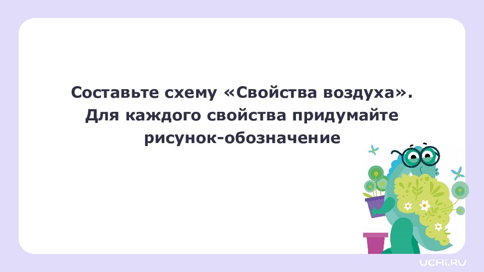 Составьте схему «Свойства воздуха». Для каждого свойства придумайте рисунок-обозначение