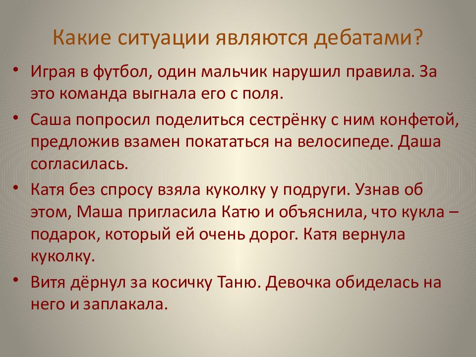 Слайд 7: Какие ситуации являются дебатами?