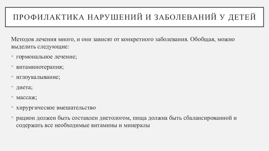 Слайд 7: Профилактика нарушений и заболеваний у детей
