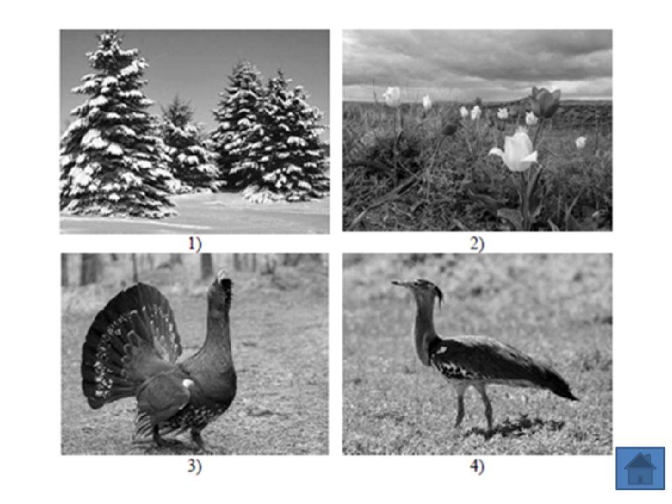 зона степей зона тайги ель тюльпан глухарь дрофа Переход на слайд с фото Переход на слайд с заданием 3.3.