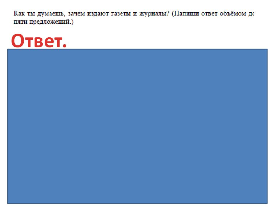 Газеты и журналы издаются, чтобы люди могли узнавать новости о событиях в стране и мире. Газеты и журналы - это удобный способ донести информацию до большого количества людей. К тому же, это хороший вариант досуга для многих во время поездки или в ожидании своей очереди. Ответ.