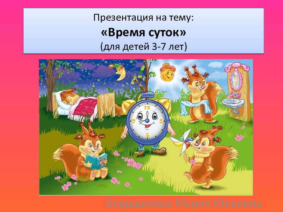 Первый слайд презентации: Презентация на тему: «Время суток» (для детей 3-7 лет)