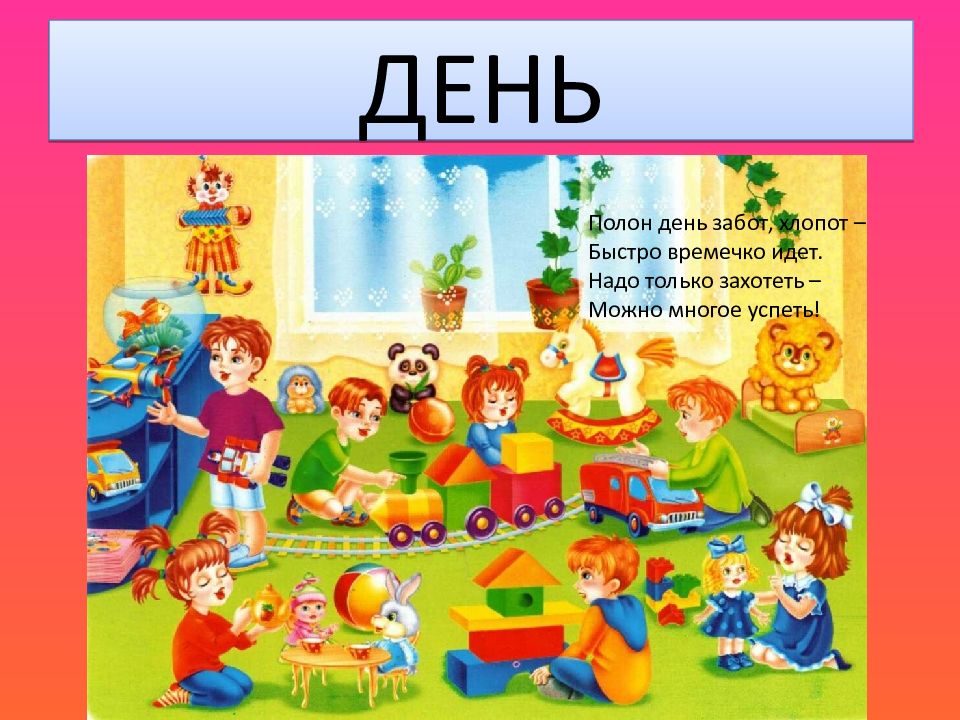 Полон день забот, хлопот – Быстро времечко идет. Надо только захотеть – Можно многое успеть!
