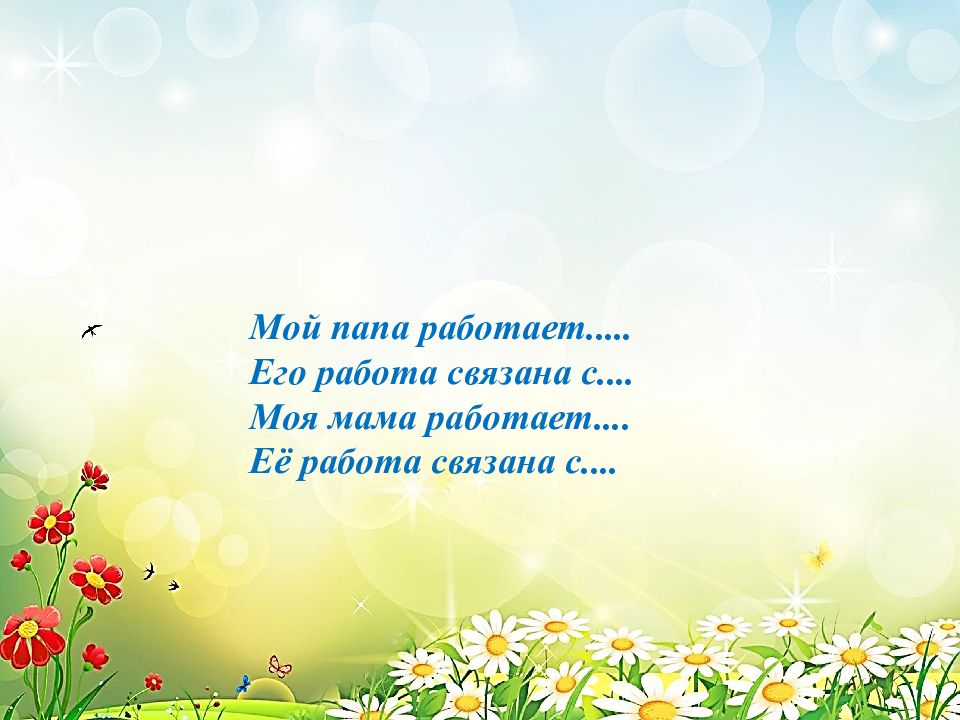 Мой папа работает..... Его работа связана с.... Моя мама работает.... Её работа связана с....