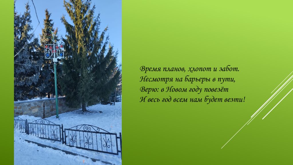 Время планов, хлопот и забот. Несмотря на барьеры в пути, Верю: в Новом году повезёт И весь год всем нам будет везти!