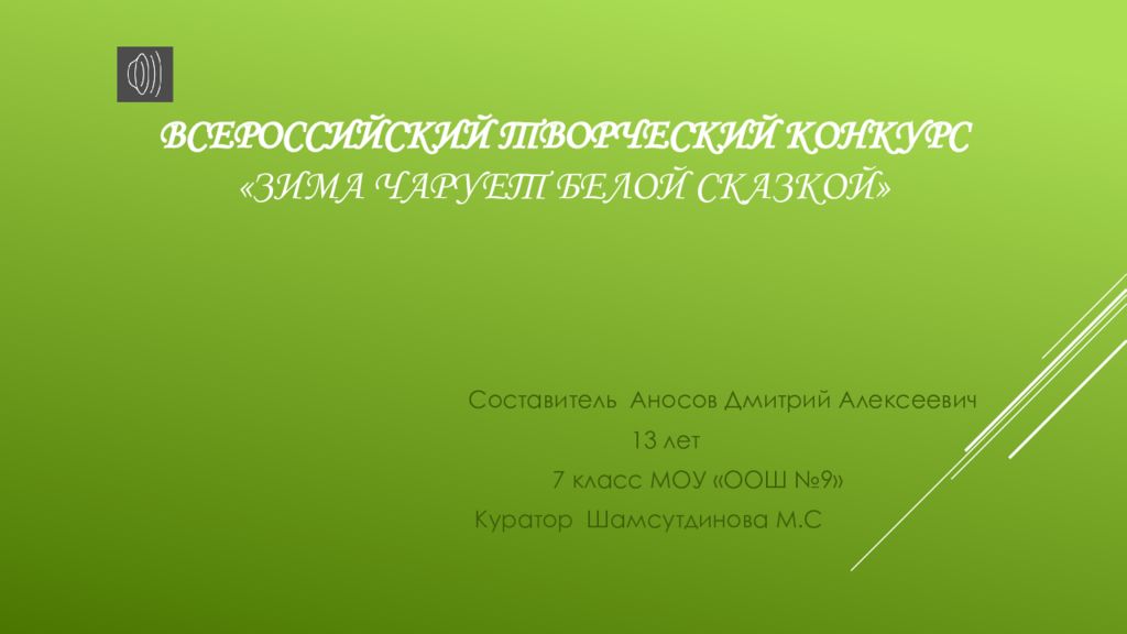 Первый слайд презентации: Всероссийский творческий конкурс «Зима чарует белой сказкой»