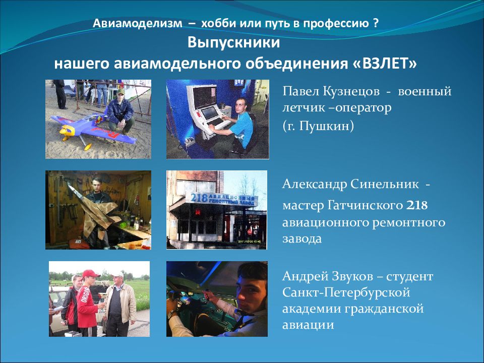 Слайд 6: Авиамоделизм – хобби или путь в профессию ? Выпускники нашего авиамодельного объединения «ВЗЛЕТ»