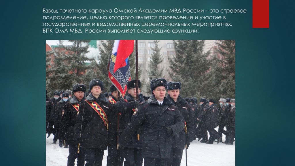 Первый слайд презентации: Взвод почетного караула Омской академии МВД России