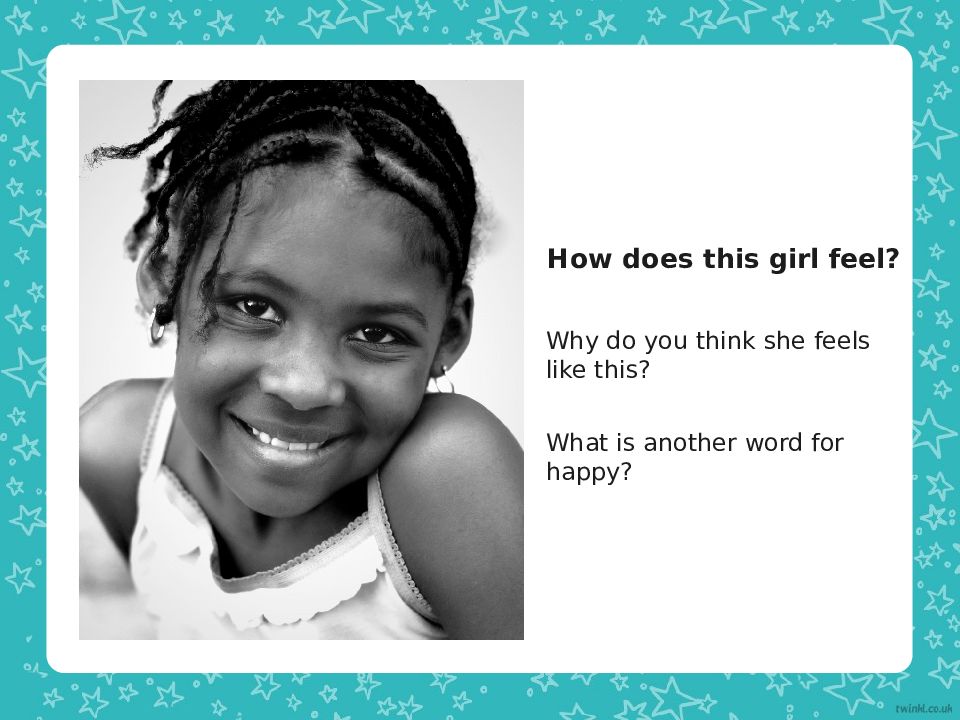 How does this girl feel? Why do you think she feels like this? What is another word for happy?