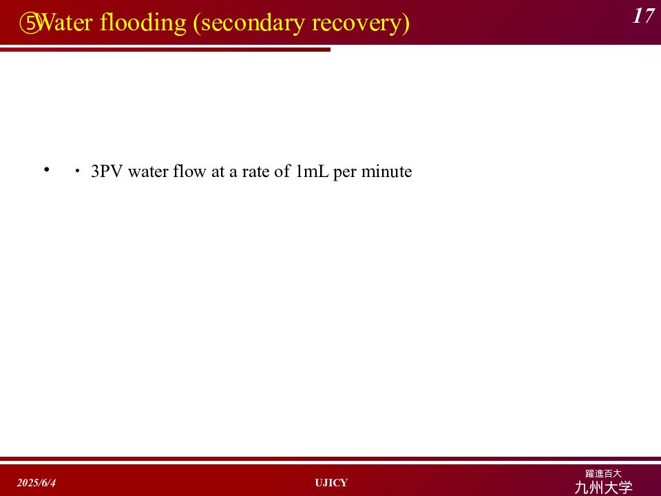 2025/6/4 UJICY ・ 3PV water flow at a rate of 1mL per minute ⑤ Water flooding (secondary recovery)