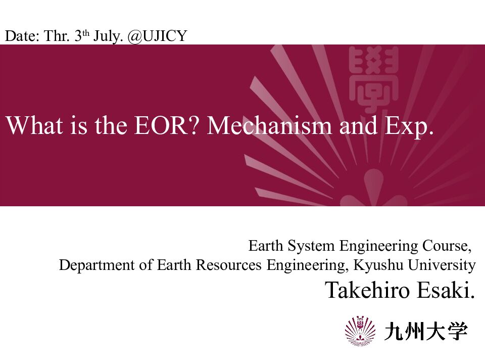 What is the EOR? Mechanism and Exp. Earth System Engineering Course, Department of Earth Resources Engineering, Kyushu University Takehiro Esaki. Date: Thr. 3 th July. @UJICY