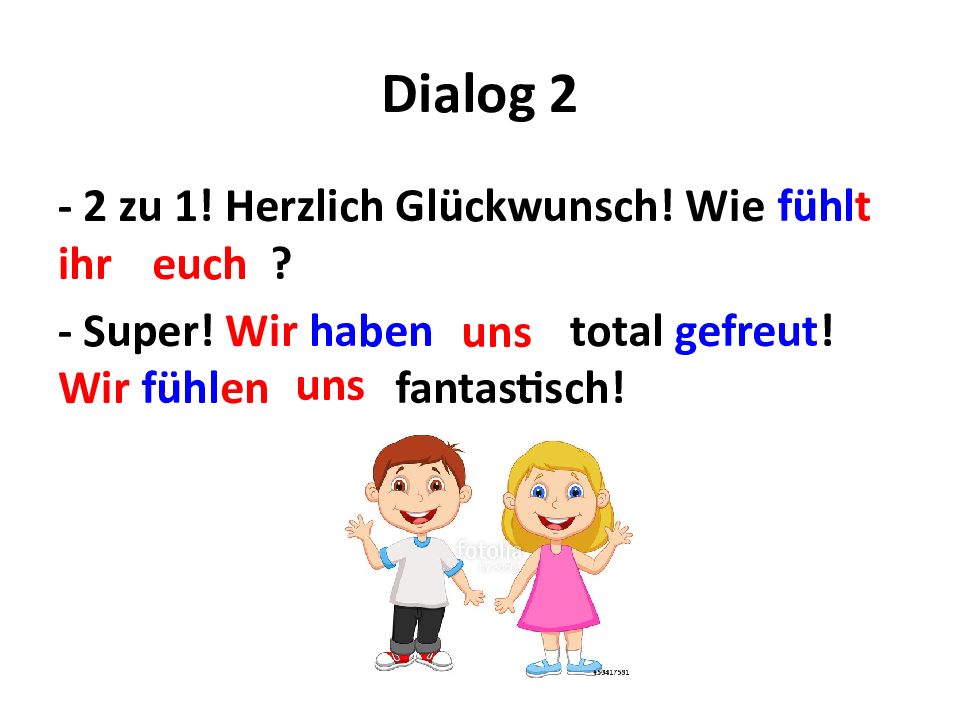 - 2 zu 1! Herzlich Glückwunsch! Wie fühl t ihr... ? - Super! Wir haben... total gefreut ! Wir fühl en... fantastisch! euch uns uns