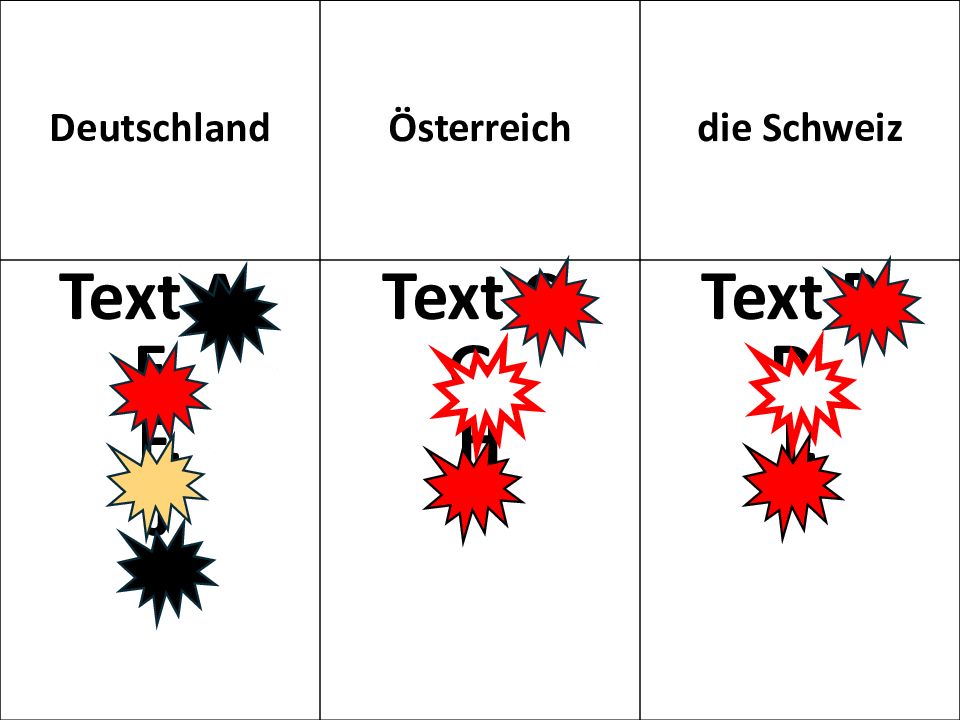 Deutschland Österreich die Schweiz Text A, E, F, J Text C, G, H Text B, D, I,