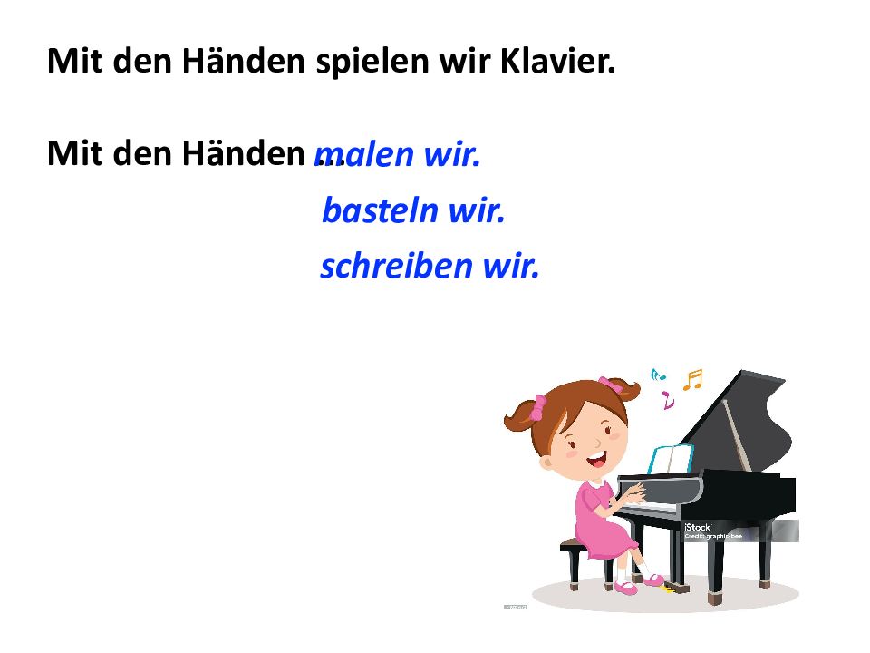 Mit den Händen spielen wir Klavier. Mit den Händen... malen wir. basteln wir. schreiben wir.