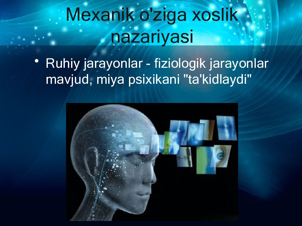 Слайд 7: Mexanik o'ziga xoslik nazariyasi
