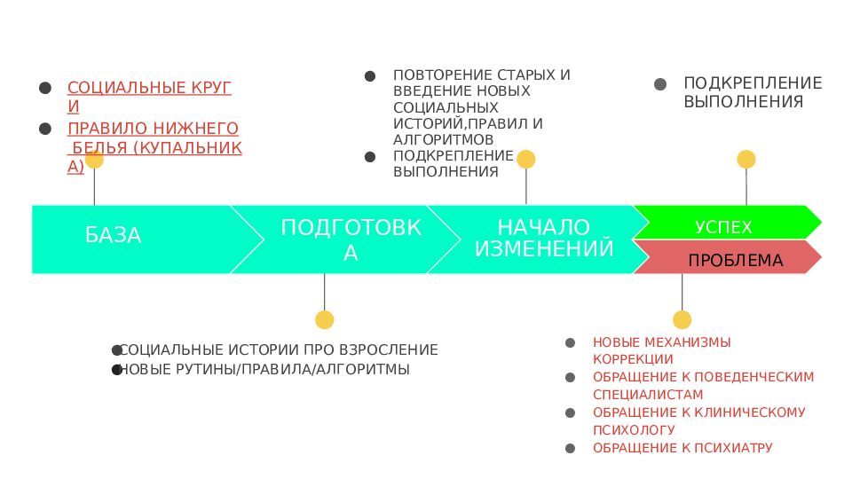 БАЗА СОЦИАЛЬНЫЕ КРУГИ ПРАВИЛО НИЖНЕГО БЕЛЬЯ (КУПАЛЬНИКА) ПОДГОТОВКА СОЦИАЛЬНЫЕ ИСТОРИИ ПРО ВЗРОСЛЕНИЕ НОВЫЕ РУТИНЫ/ПРАВИЛА/АЛГОРИТМЫ ПОВТОРЕНИЕ СТАРЫХ И ВВЕДЕНИЕ НОВЫХ СОЦИАЛЬНЫХ ИСТОРИЙ,ПРАВИЛ И АЛГОРИТМОВ ПОДКРЕПЛЕНИЕ ВЫПОЛНЕНИЯ НАЧАЛО ИЗМЕНЕНИЙ НОВЫЕ МЕХАНИЗМЫ КОРРЕКЦИИ ОБРАЩЕНИЕ К ПОВЕДЕНЧЕСКИМ СПЕЦИАЛИСТАМ ОБРАЩЕНИЕ К КЛИНИЧЕСКОМУ ПСИХОЛОГУ ОБРАЩЕНИЕ К ПСИХИАТРУ УСПЕХ ПОДКРЕПЛЕНИЕ ВЫПОЛНЕНИЯ ПРОБЛЕМА