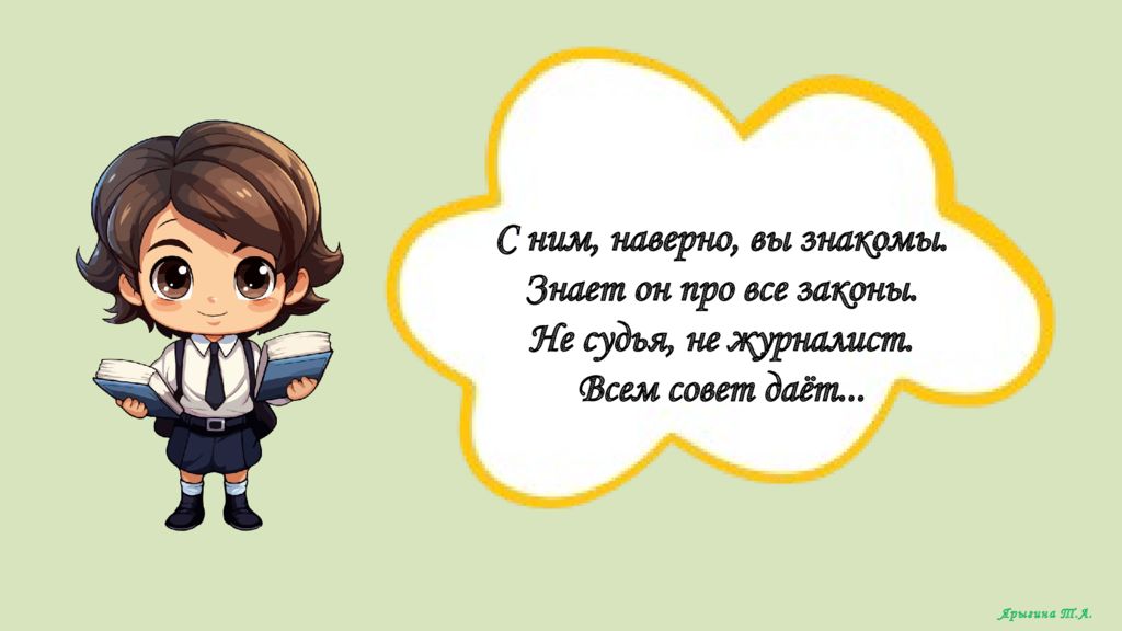 С ним, наверно, вы знакомы. Знает он про все законы. Не судья, не журналист. Всем совет даёт... Ярыгина Т.А.