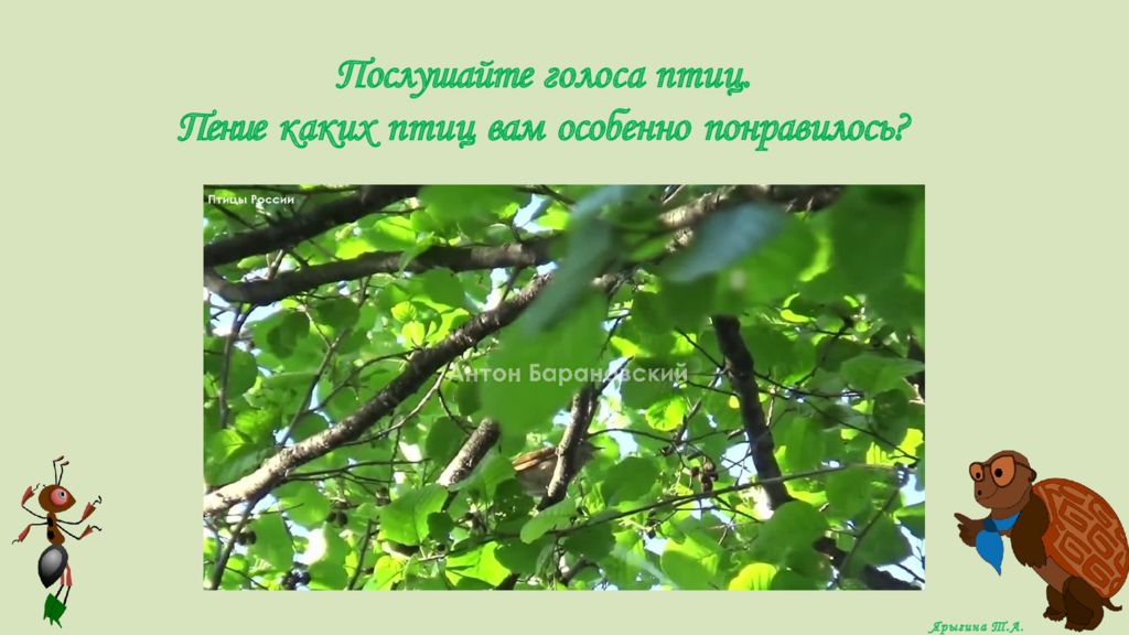 Слайд 9: Послушайте голоса птиц. Пение каких птиц вам особенно понравилось?