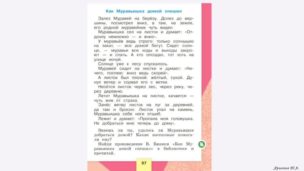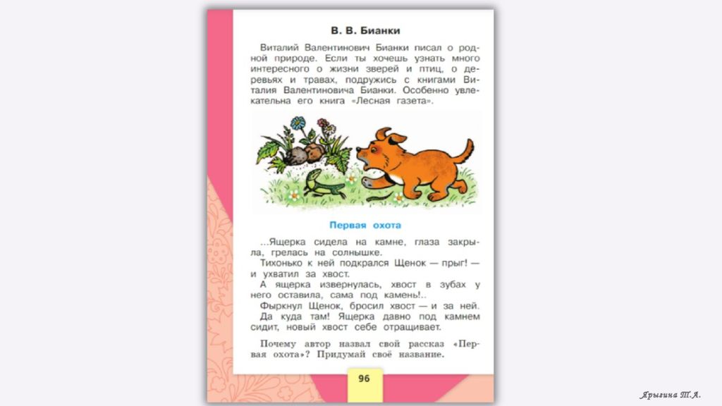 Ярыгина Т.А. В.В. Бианки. « Первая охота », « Как М уравьишка домой спешил ».