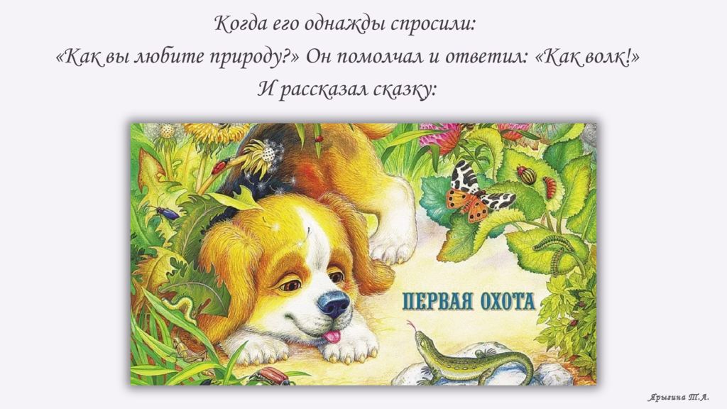 Когда его однажды спросили : « Как вы любите природу ?» Он помолчал и ответил : « Как волк !» И рассказал сказку : Ярыгина Т.А.