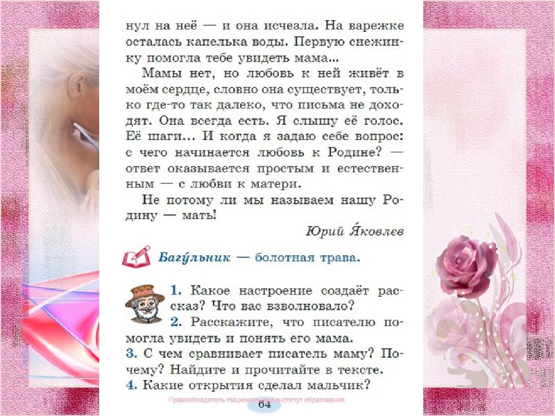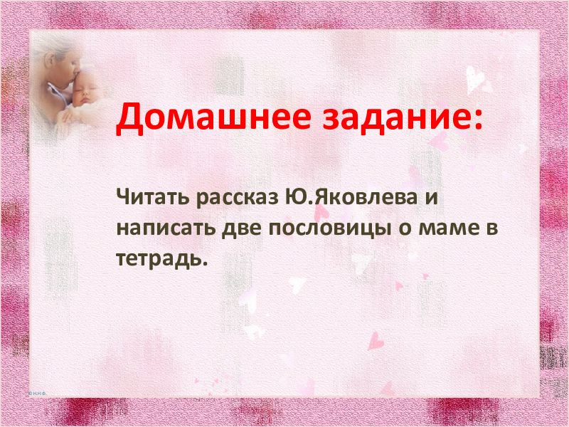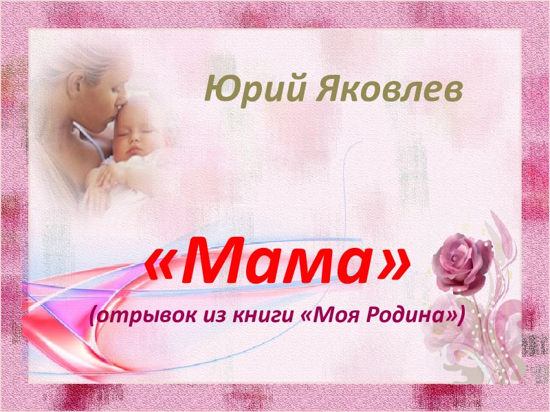 « Любовь к Родине начинается с любви к матери. А человек начинается с его отношения к матери. И, все лучшее, что есть в человеке, достается ему от матери» Ю.Яковлев