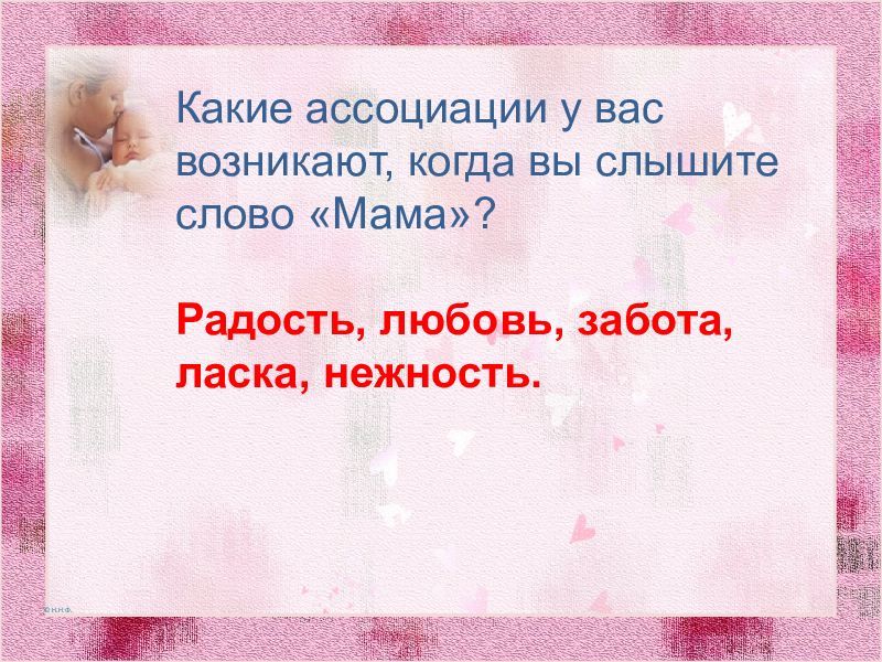 Какие ассоциации у вас возникают, когда вы слышите слово «Мама»? Радость, любовь, забота, ласка, нежность.