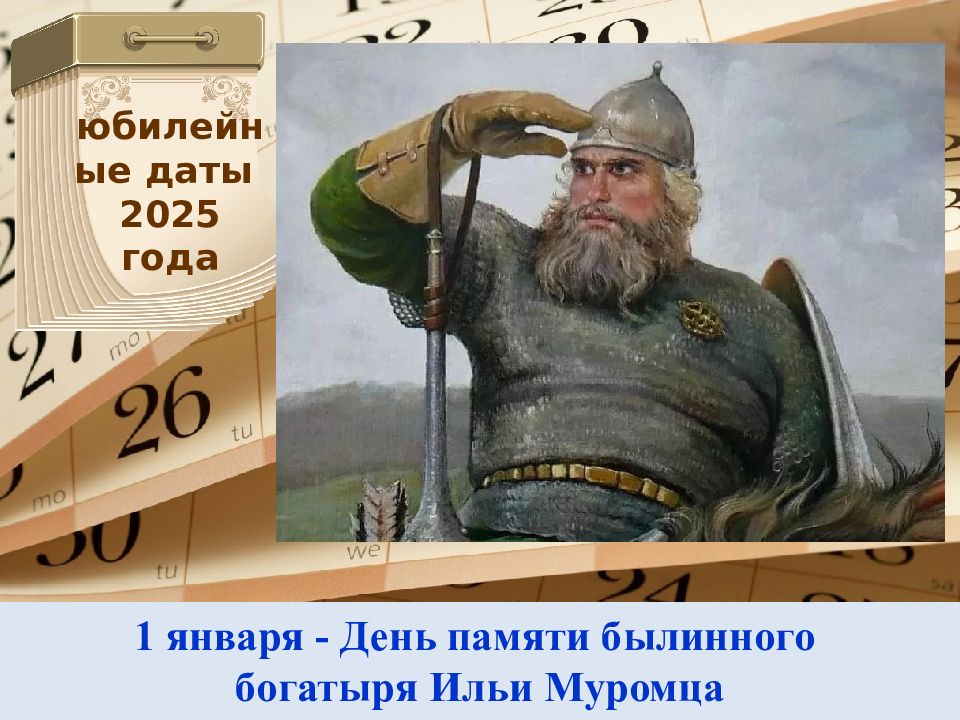 1 января - День памяти былинного богатыря Ильи Муромца юбилейные даты 2025 года