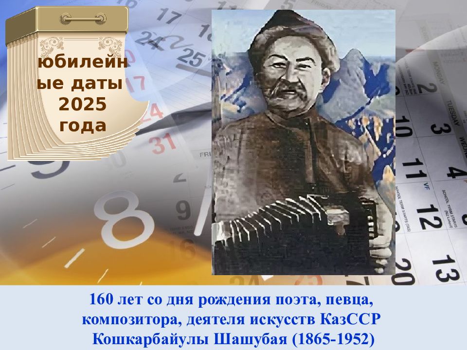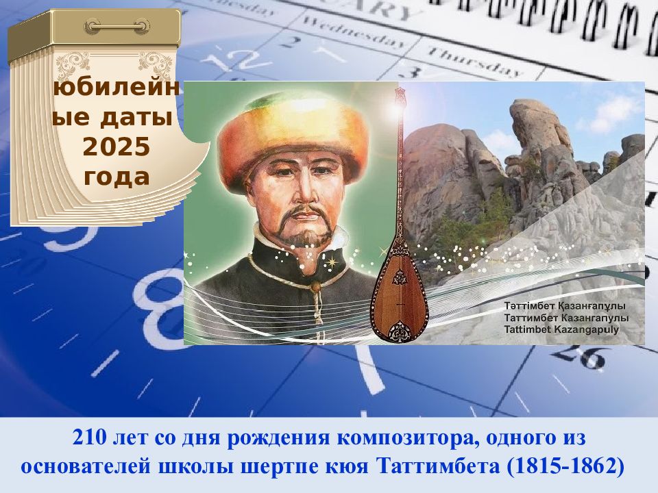 210 лет со дня рождения композитора, одного из основателей школы шертпе кюя Таттимбета (1815-1862) юбилейные даты 2025 года