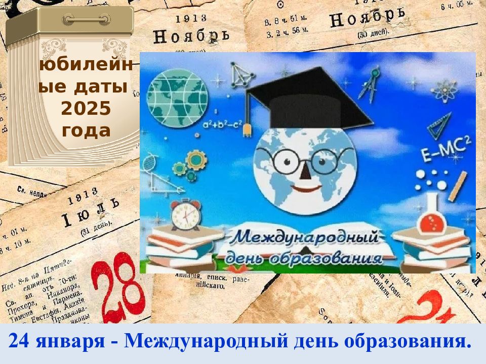 24 января - Международный день образования. юбилейные даты 2025 года