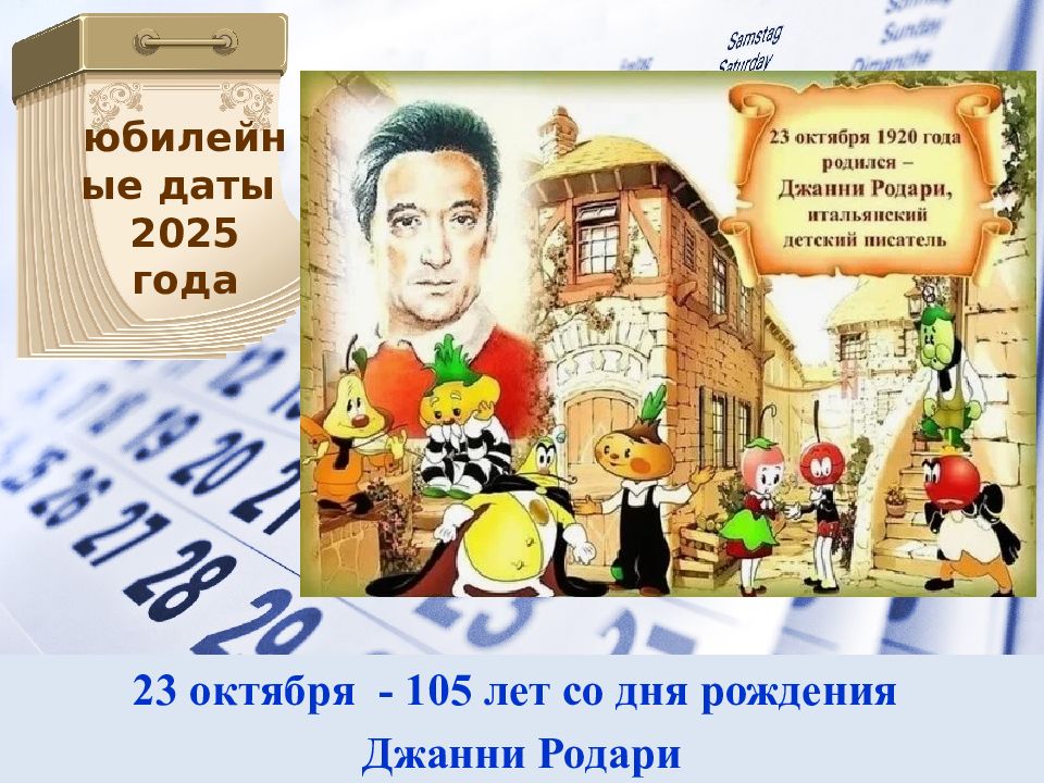 Слайд 23: юбилейные даты 2025 года