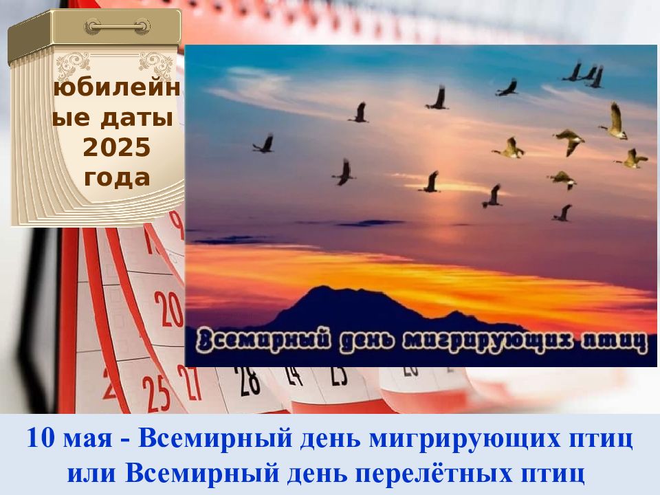 10 мая - Всемирный день мигрирующих птиц или Всемирный день перелётных птиц юбилейные даты 2025 года