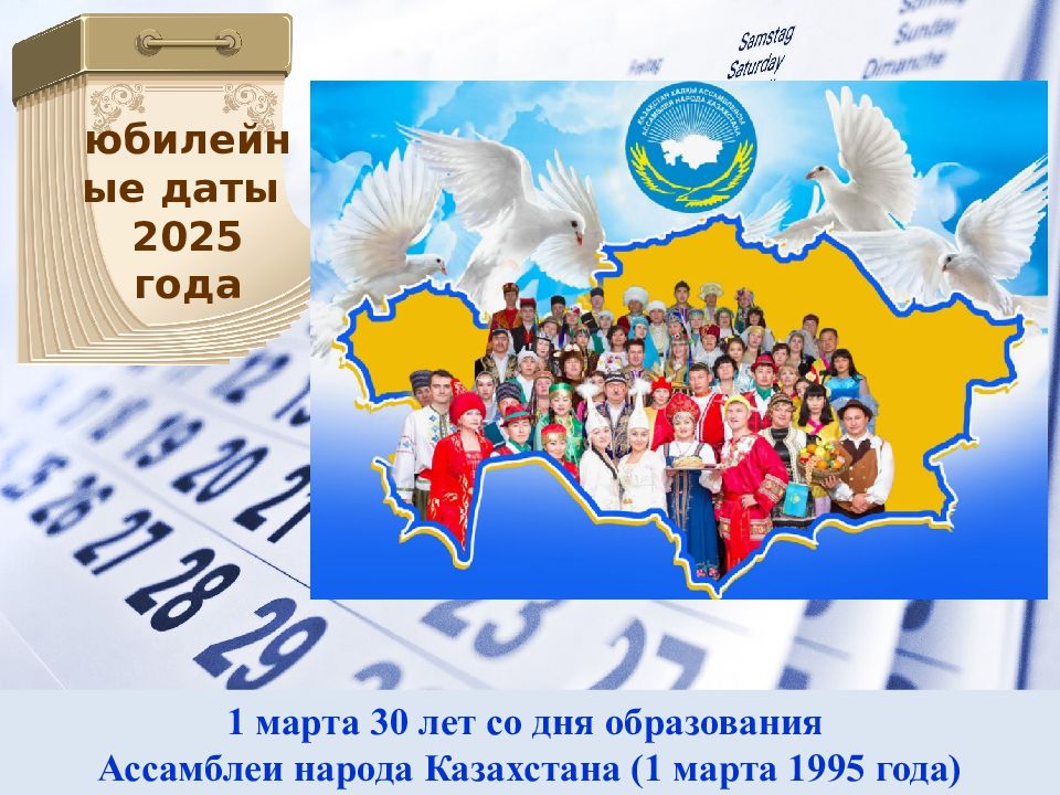 1 марта 30 лет со дня образования Ассамблеи народа Казахстана (1 марта 1995 года)