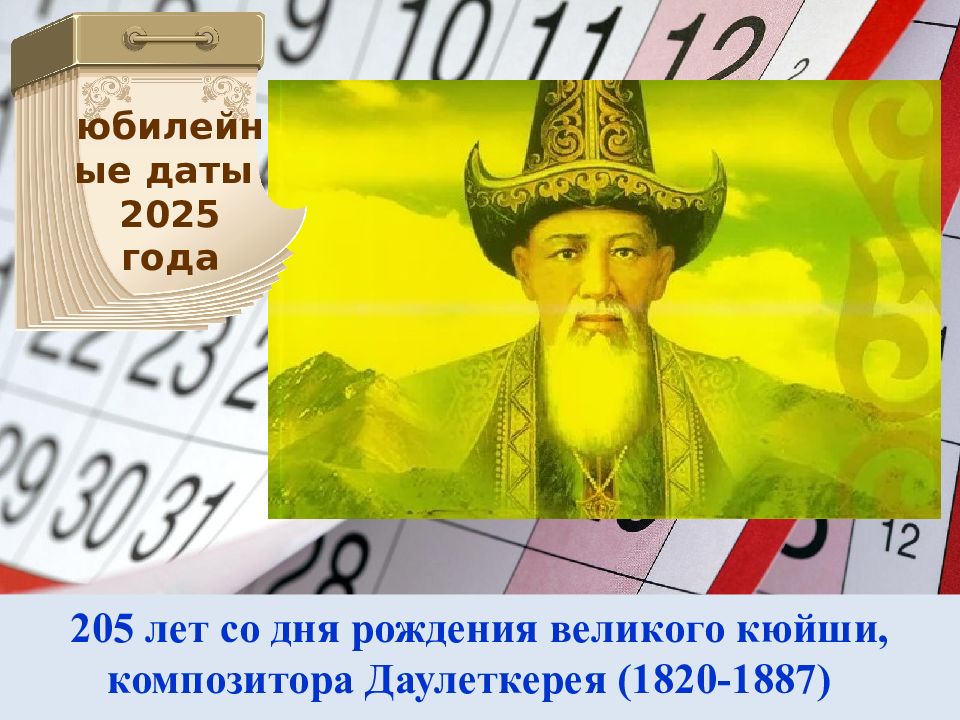 205 лет со дня рождения великого кюйши, композитора Даулеткерея (1820-1887) юбилейные даты 2025 года
