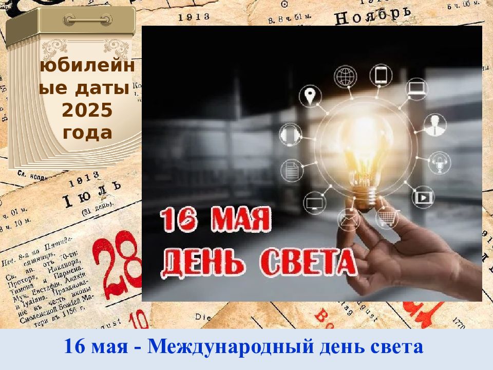 16 мая - Международный день света юбилейные даты 2025 года