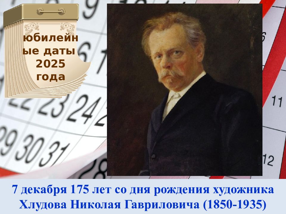 7 декабря 175 лет со дня рождения художника Хлудова Николая Гавриловича (1850-1935) юбилейные даты 2025 года