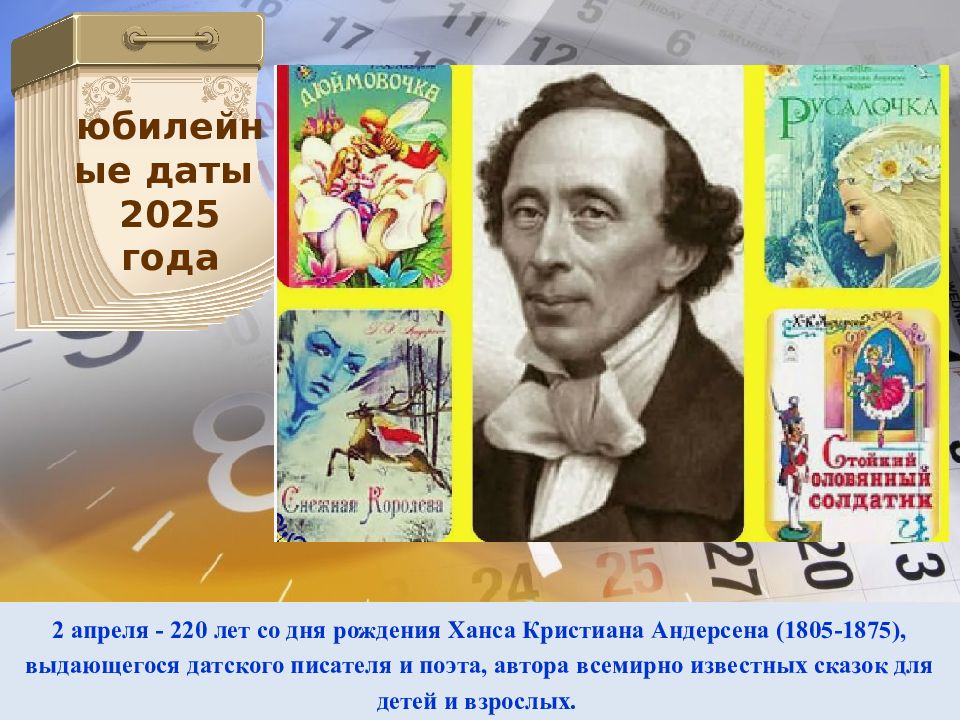 Слайд 2: юбилейные даты 2025 года