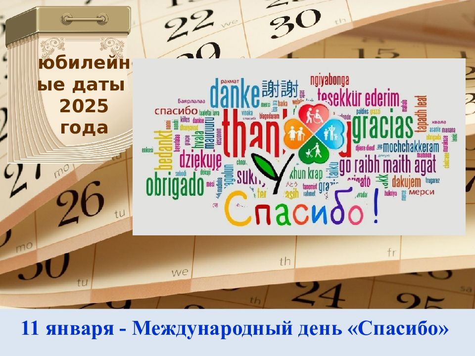 11 января - Международный день «Спасибо» юбилейные даты 2025 года