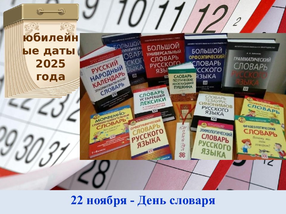 22 ноября - День словаря юбилейные даты 2025 года