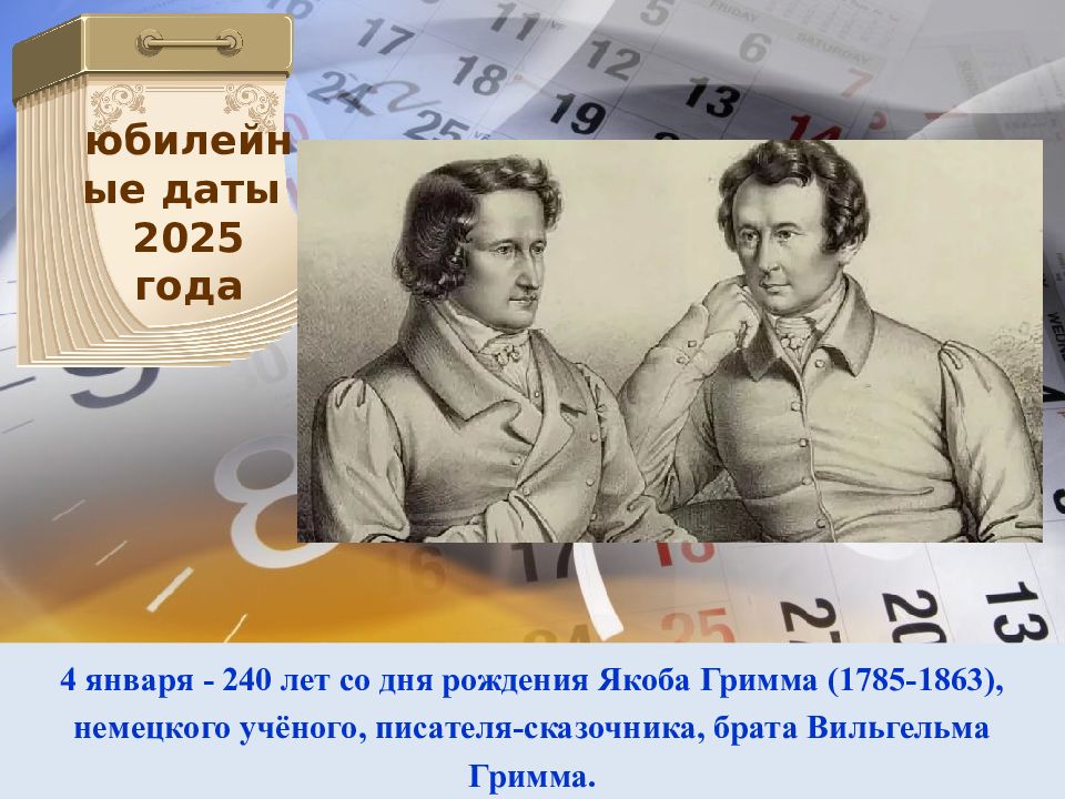 Слайд 4: юбилейные даты 2025 года