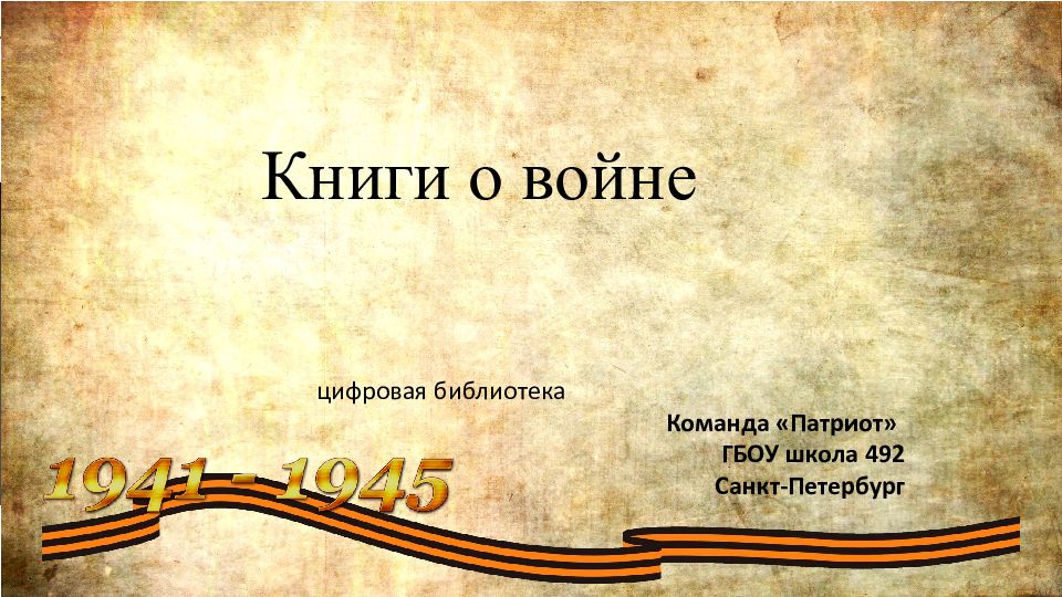 Книги о войне цифровая библиотека Команда «Патриот» ГБОУ школа 492 Санкт-Петербург