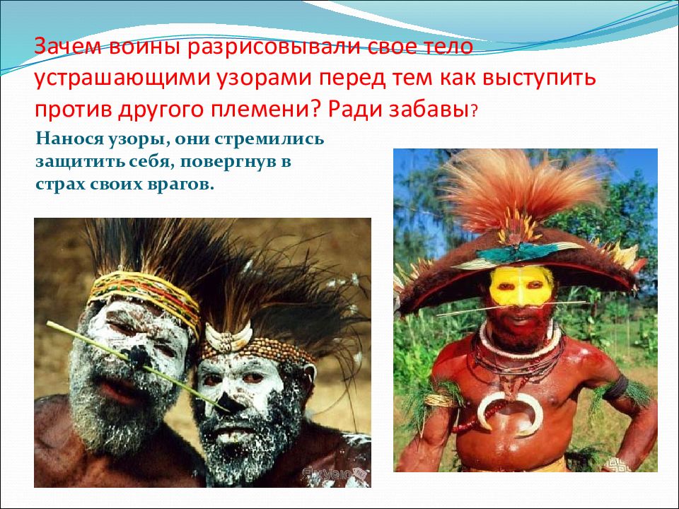 Нанося узоры, они стремились защитить себя, повергнув в страх своих врагов.