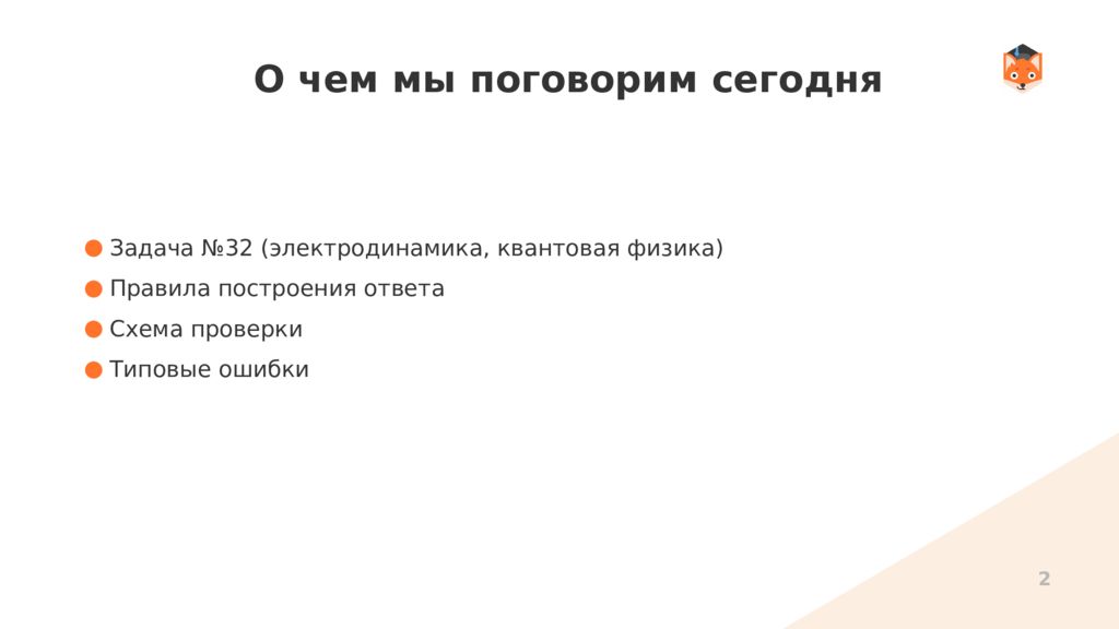 Задача №32 (электродинамика, квантовая физика) Правила построения ответа Схема проверки Типовые ошибки 2 О чем мы поговорим сегодня
