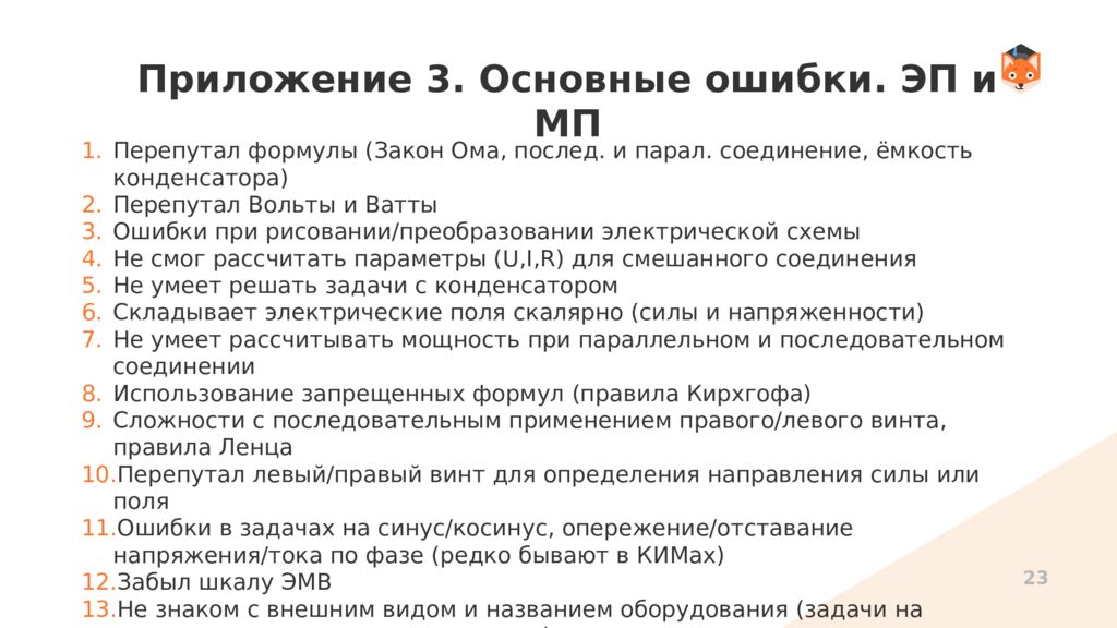 Слайд 23: Приложение 3. Основные ошибки. ЭП и МП