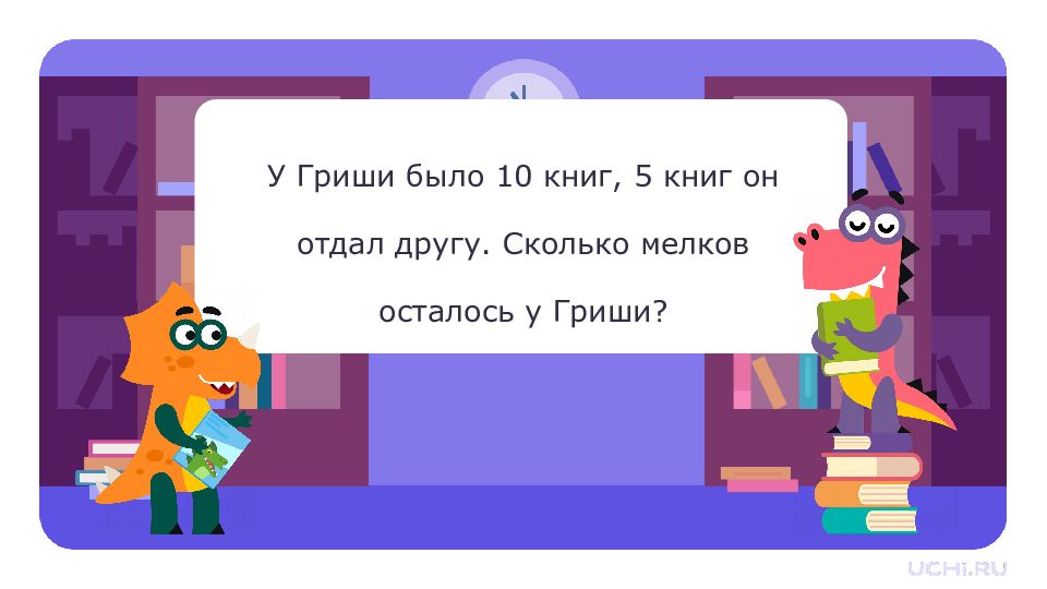 У Гриши было 10 книг, 5 книг он отдал другу. Сколько мелков осталось у Гриши?