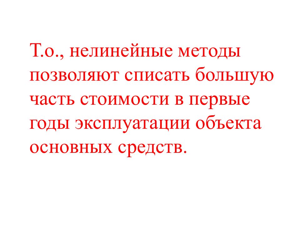 Т.о., нелинейные методы позволяют списать большую часть стоимости в первые годы эксплуатации объекта основных средств.